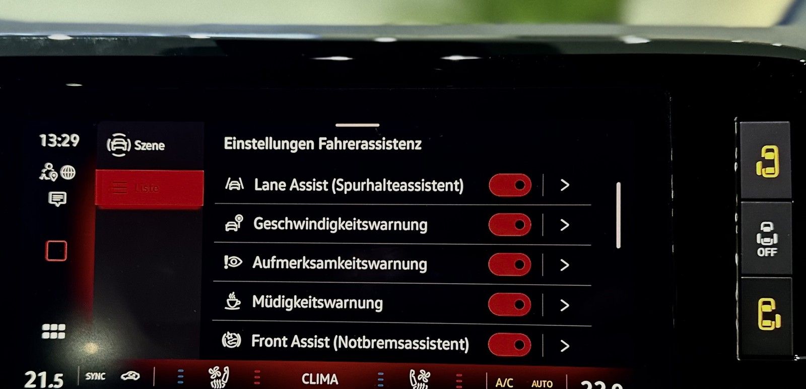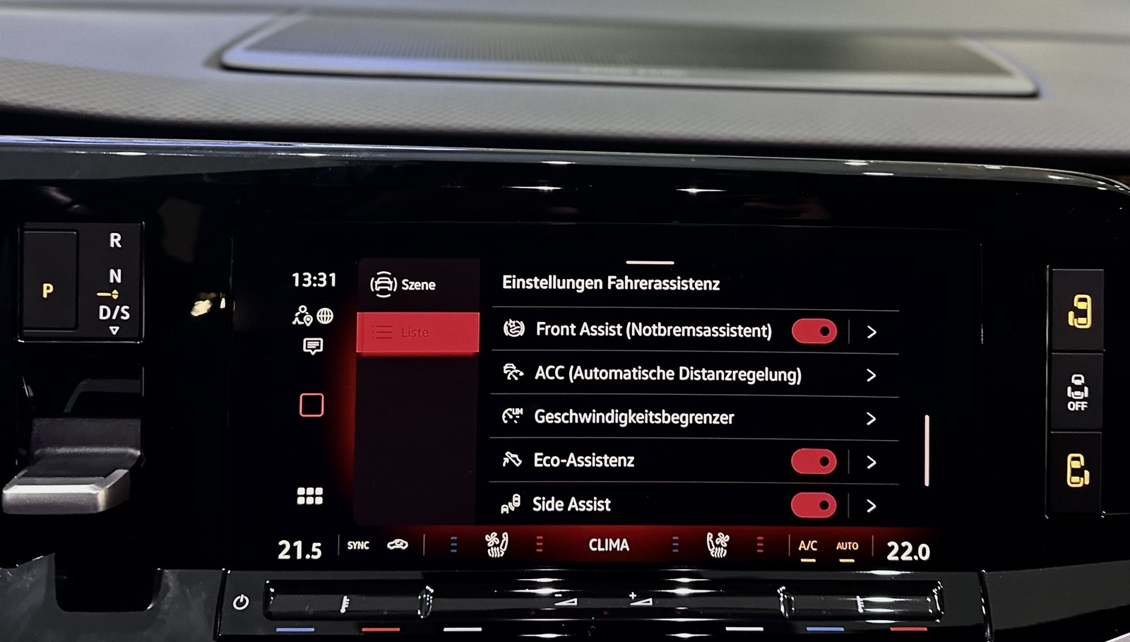- Fahrassistenz-System: Spurwechselassistent (Side Assist) mit Auspark-Assistent und Ausstiegswarnung